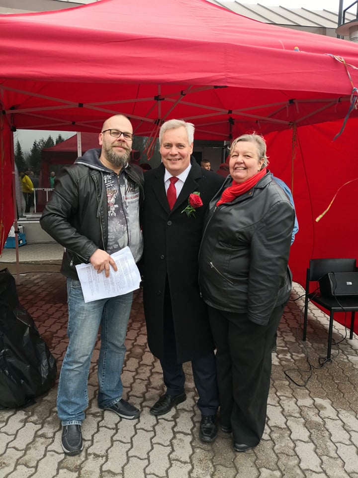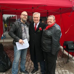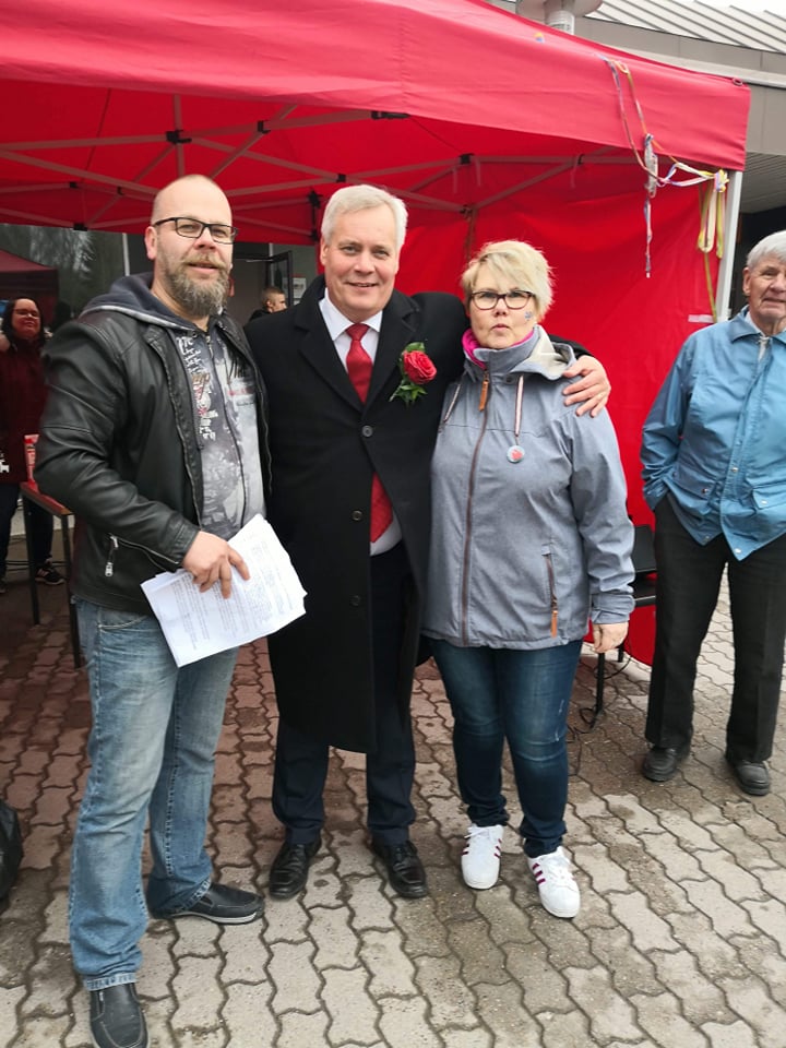 Jarkko Veck ja Anne Tuomaila,Antti Rinteen seurassa