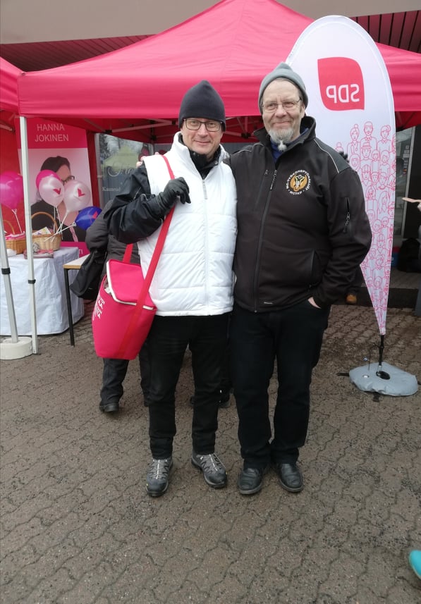 Eduskuntavaalien ehdokas Mika Kari ja Esko Syrjä,huhtikuu 2019