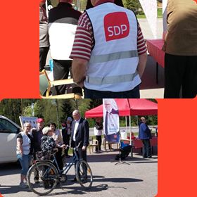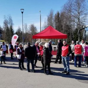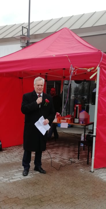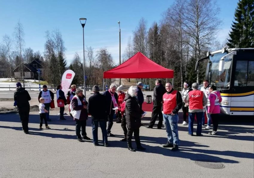 Eduskuntavaalien kahvitusta Kärkölässä,kun vaalibussi saapui.Edessä Matti Sallila