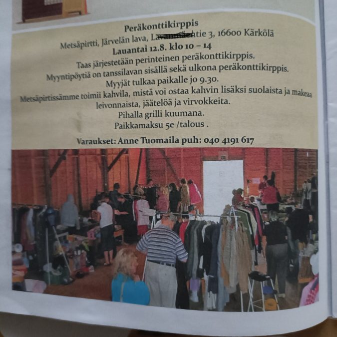 Perinteinen kirpputoritapahtumamme 12 8 klo 10 00 14 00 liesniementie 3 16600 jarvela